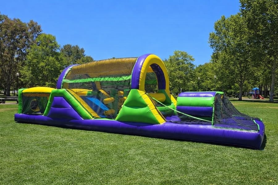 Rent a show-stopping Slime Obstacle Course Jumper for your next event. This slime green, purple, and yellow 42ft obstacle course jumper rental delivers climbing, sliding, tunnels, and multi-level obstacles. Perfect for birthdays, school event fundraisers, corporate events, and community fairs. Fast setup. Safe design. Big fun. 🟩🟪🟨