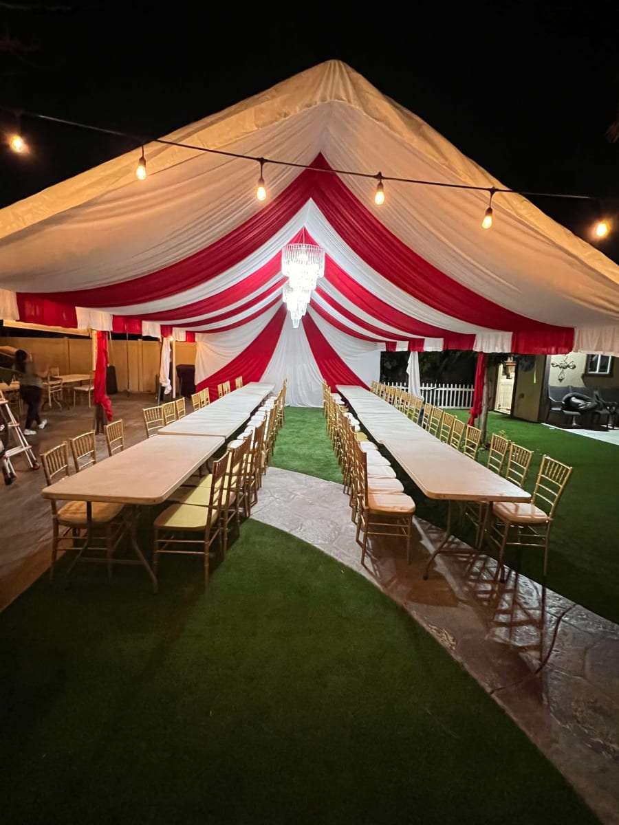 Our 20x30 Luxury Packages are the most popular choice for weddings and galas in the region. Contact us today to select your draping colors and secure your spot on our calendar.
