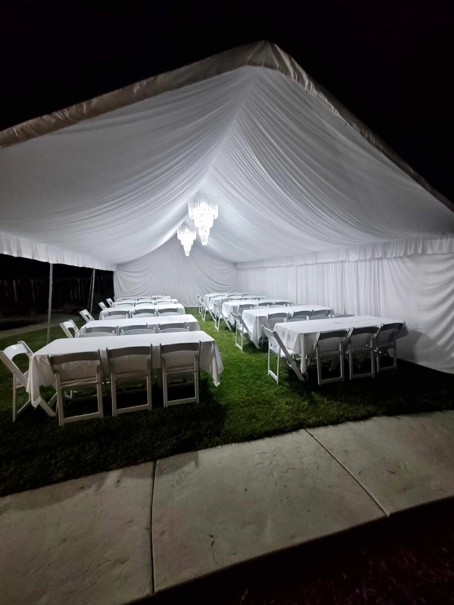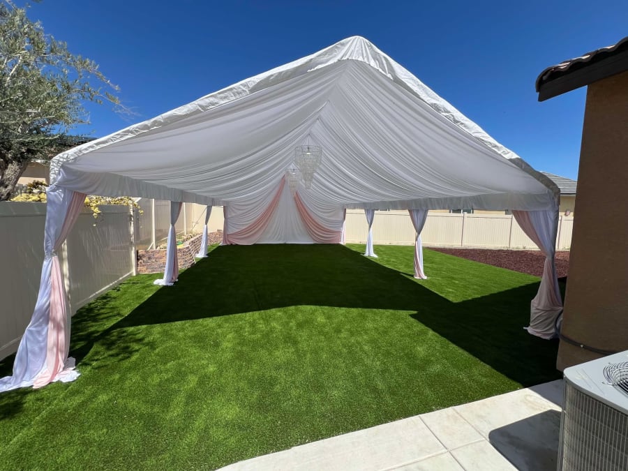 Premium Sun Protection: Our heavy-duty white tent ensures your guests stay cool and comfortable while providing the perfect backdrop for your custom decor.