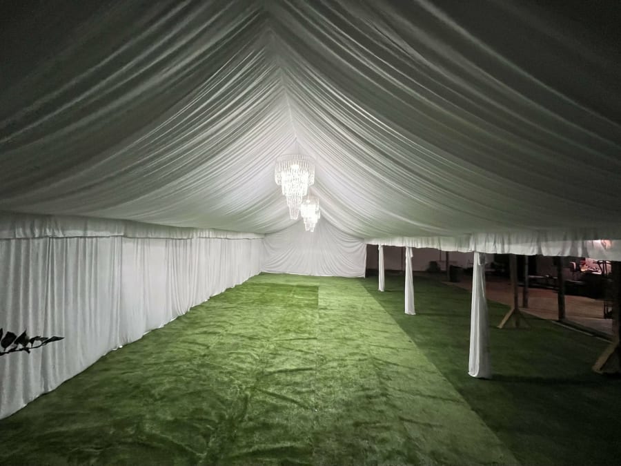 • Full-Scale Custom Draping: Elevate your aesthetics with our wide selection of draping colors. Whether you desire a romantic "All-White" wedding look, a sophisticated Champagne palette, or bold, branded corporate colors, our professional draping covers the entire interior frame for a soft, elegant, and seamless finish.