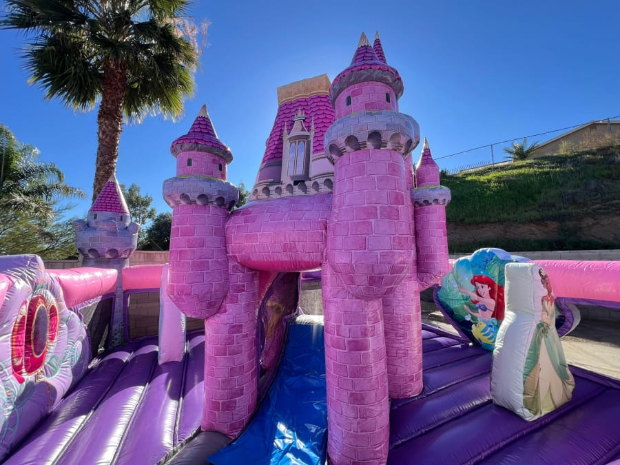 This unit features a breathtaking lineup of all her favorites: Cinderella, Ariel (The Little Mermaid), Jasmine, Aurora (Sleeping Beauty), Rapunzel, Tiana, and Mulan. It brings a massive WOW Factor to any Inland Empire event, blending a soft-play environment with active inflatable fun.