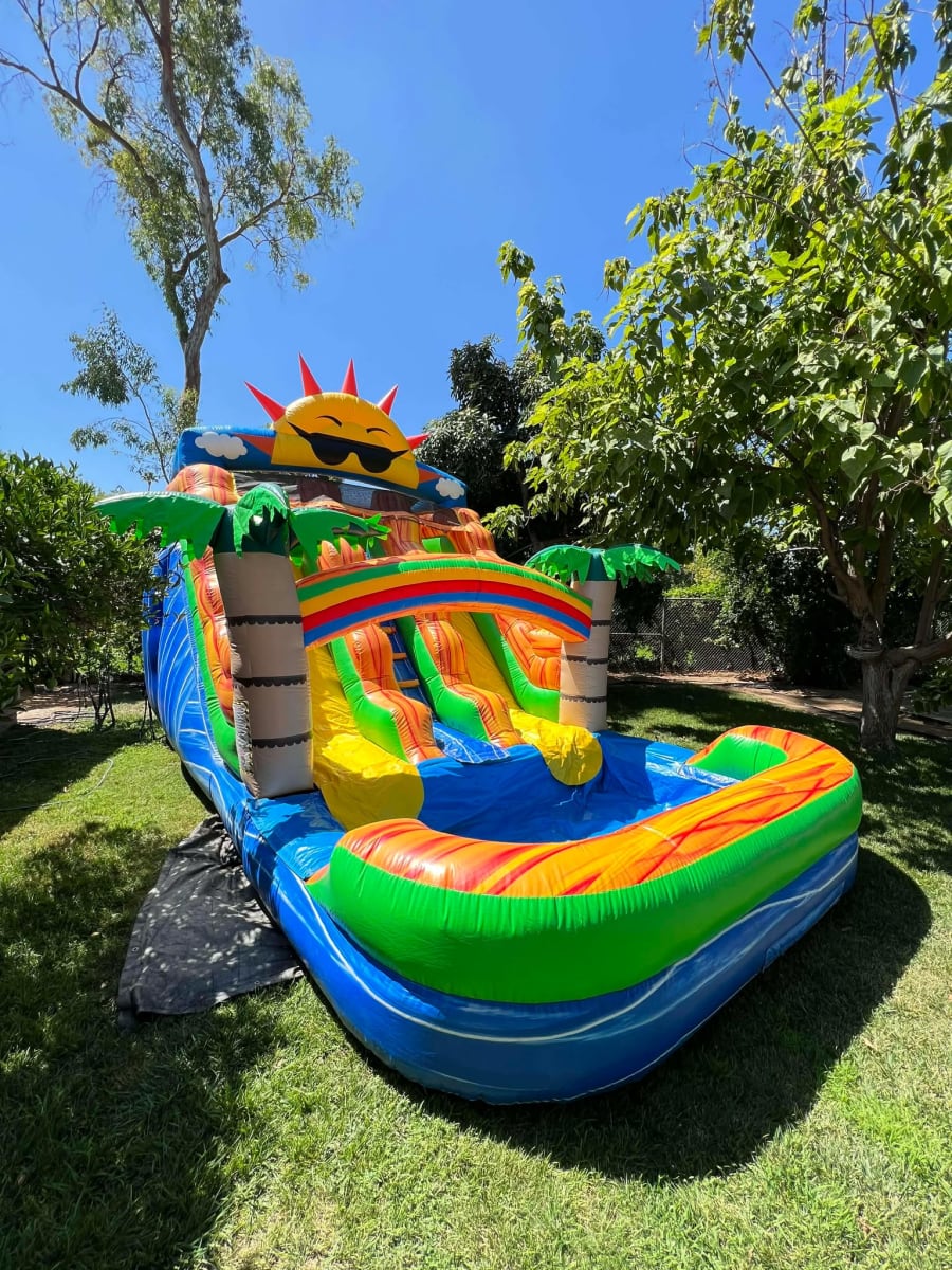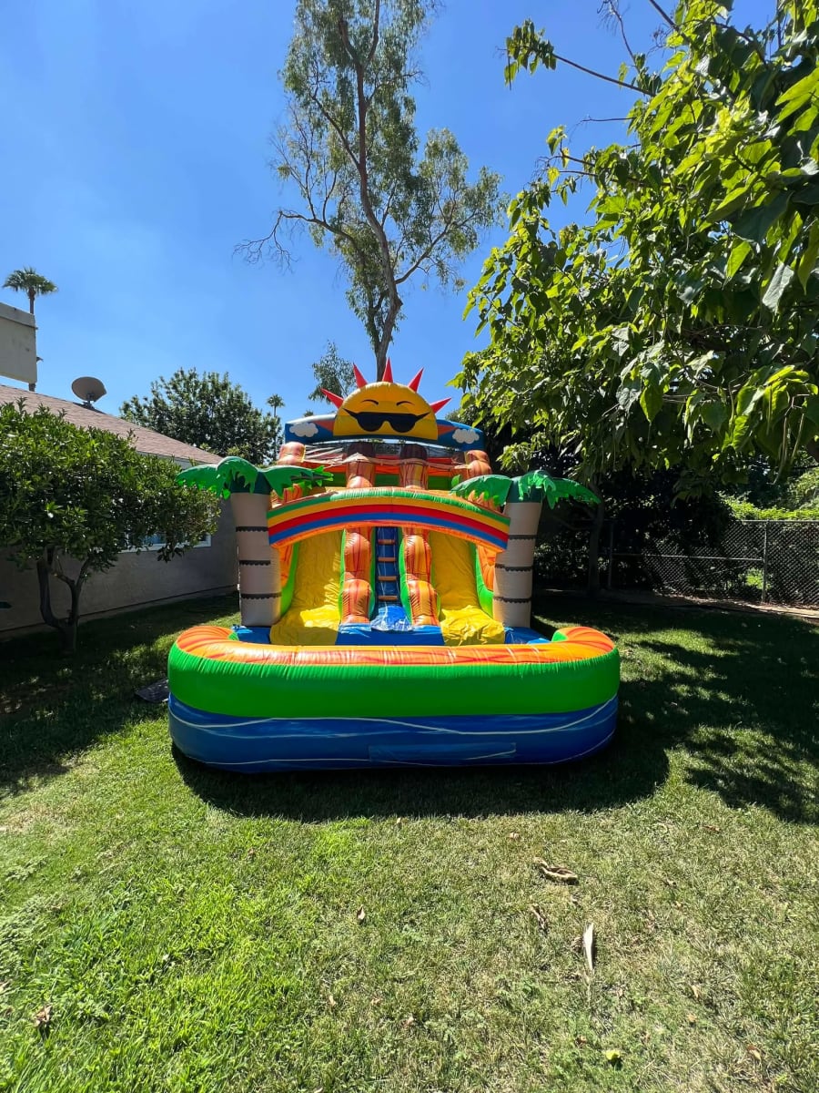 Bring the sunshine to your next party with the Jr. Sunshine Double Water Slide! This vibrant, high-energy unit is perfect for those hot summer days in Moreno Valley, Menifee, and Riverside. Designed specifically for younger thrill-seekers and medium-sized backyards, it offers all the excitement of a massive slide in a footprint that fits most residential spaces.